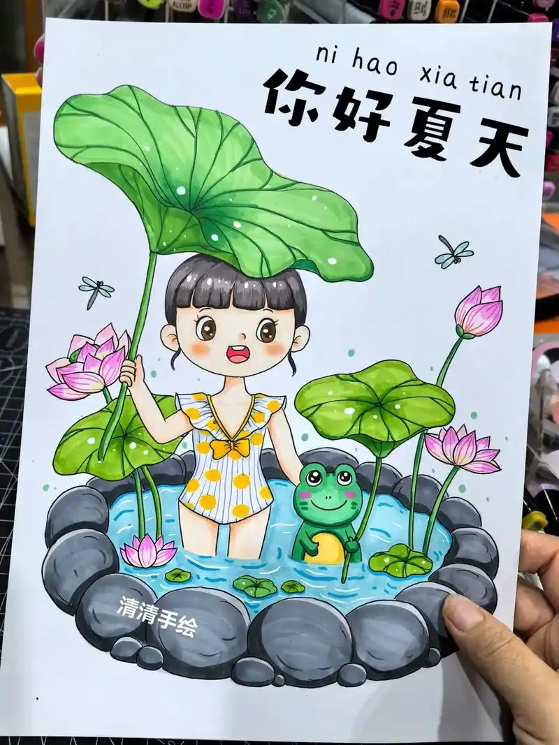 手绘立夏荷花冰饮节气插画.#插画 #立夏 #立夏浅尝一口夏天
