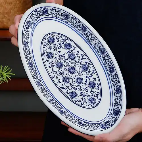 青花瓷鱼盘椭圆大号菜盘子酒店餐具清蒸鱼盘釉下彩个性商用菜盘