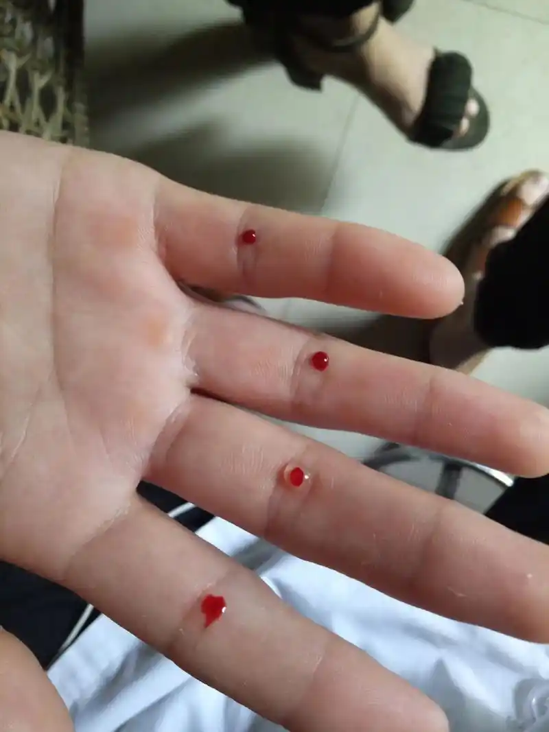 小帅哥小美女都来扎四缝放血 四缝穴放血的作用一般是治疗小孩疳 - 抖