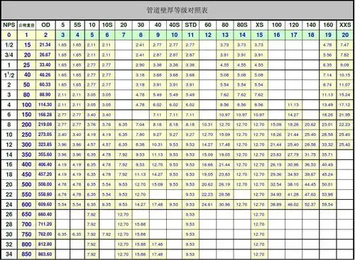 管道壁厚等级对照表