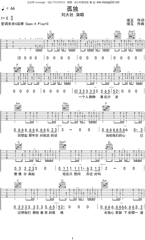 刘大壮孤独吉他谱c调吉他弹唱谱