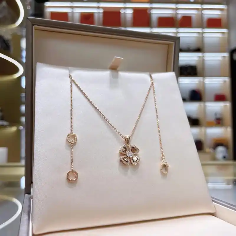 bvlgari宝格丽20早春新款fiorever系列18k金玫瑰金镶10分钻花瓣项链