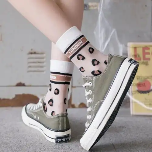 透明袜子女韩国玻璃丝水晶袜夏季薄款日系豹纹中筒袜ins潮凉鞋袜