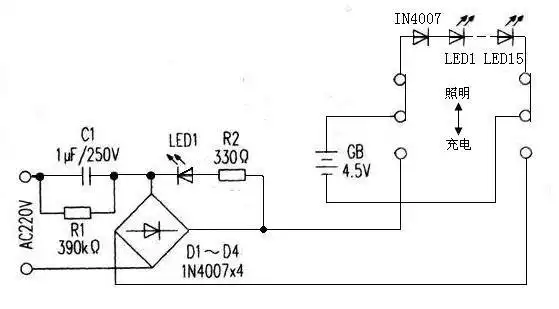 常用led充电式手电筒,应急灯电路图