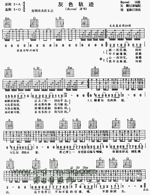 灰色轨迹吉他谱_beyond_g调弹唱谱_经典粤语歌曲