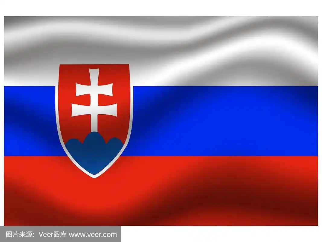 斯洛伐克国旗飘扬和白色背景上的阴影效果.为你的业务.原色和比例.