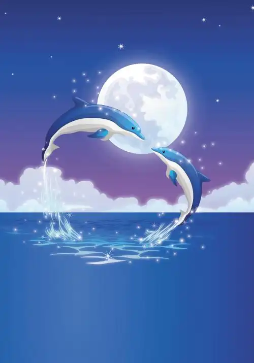 求一张蓝色系图片,两只海豚在亲嘴,动漫的