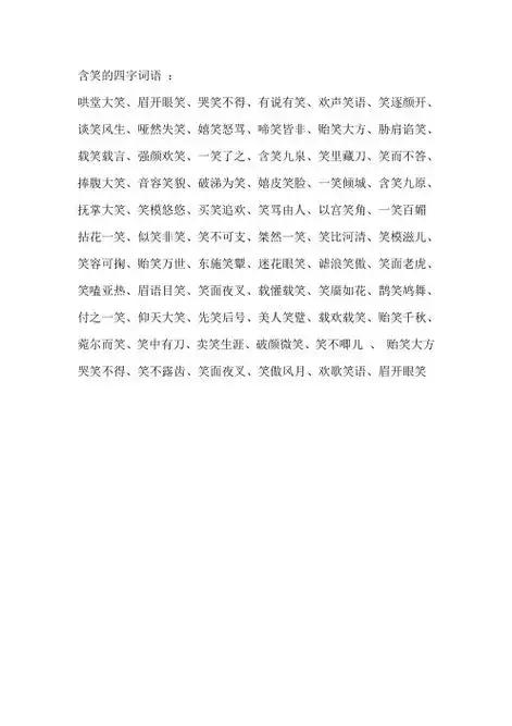 含笑的四字词语: 哄堂大笑,眉开眼笑,哭笑不得,有说有笑,欢声笑语