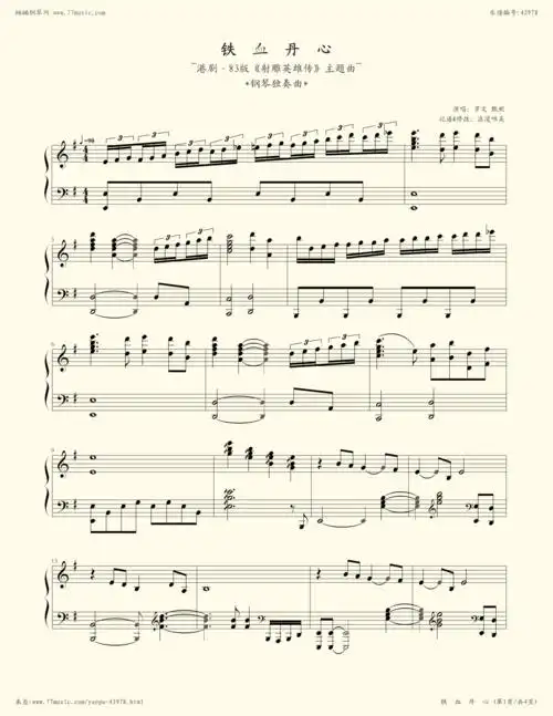 钢琴谱射雕英雄传主题曲铁血丹心