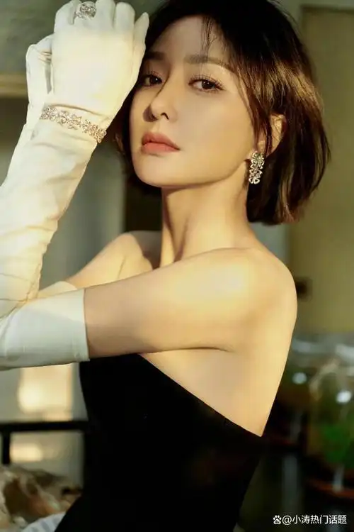 秦岚短发,黑色吊带牛仔,精致迷人