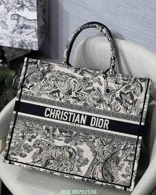 dior刺绣单肩包booktote老花系列黑色老花刺绣大包