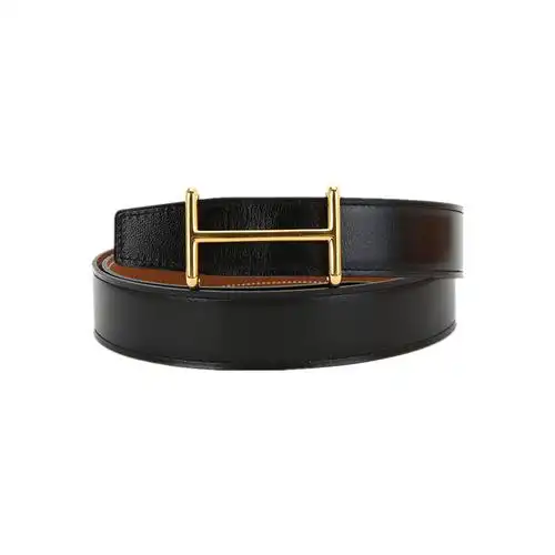 hermes爱马仕男士金色h扣黑棕双面牛皮腰带宽32毫米110