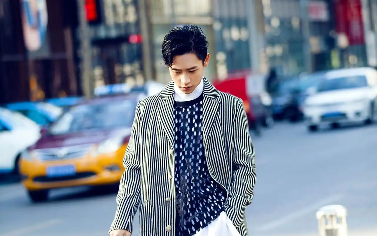 魏晨条纹外套三生帅气街拍图片壁纸