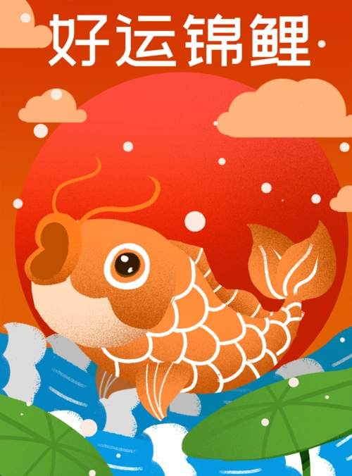 可爱插画锦鲤促销活动海报