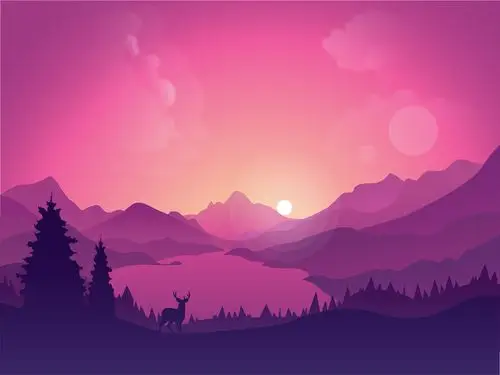 落日风景插画矢量图片