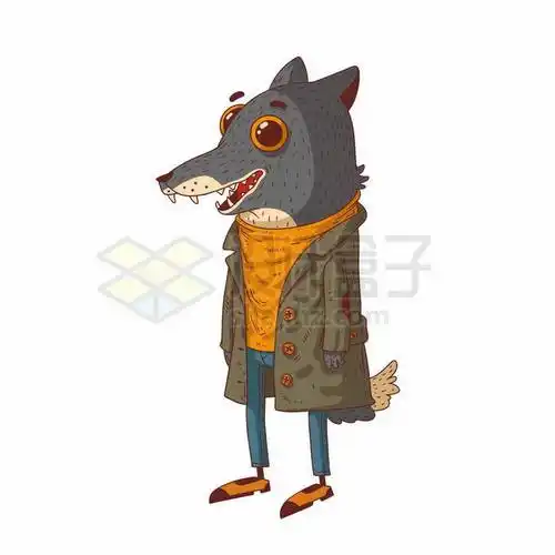 卡通狼人披着大衣抽象插画9424273矢量图片免抠素材 人物素材-第1张