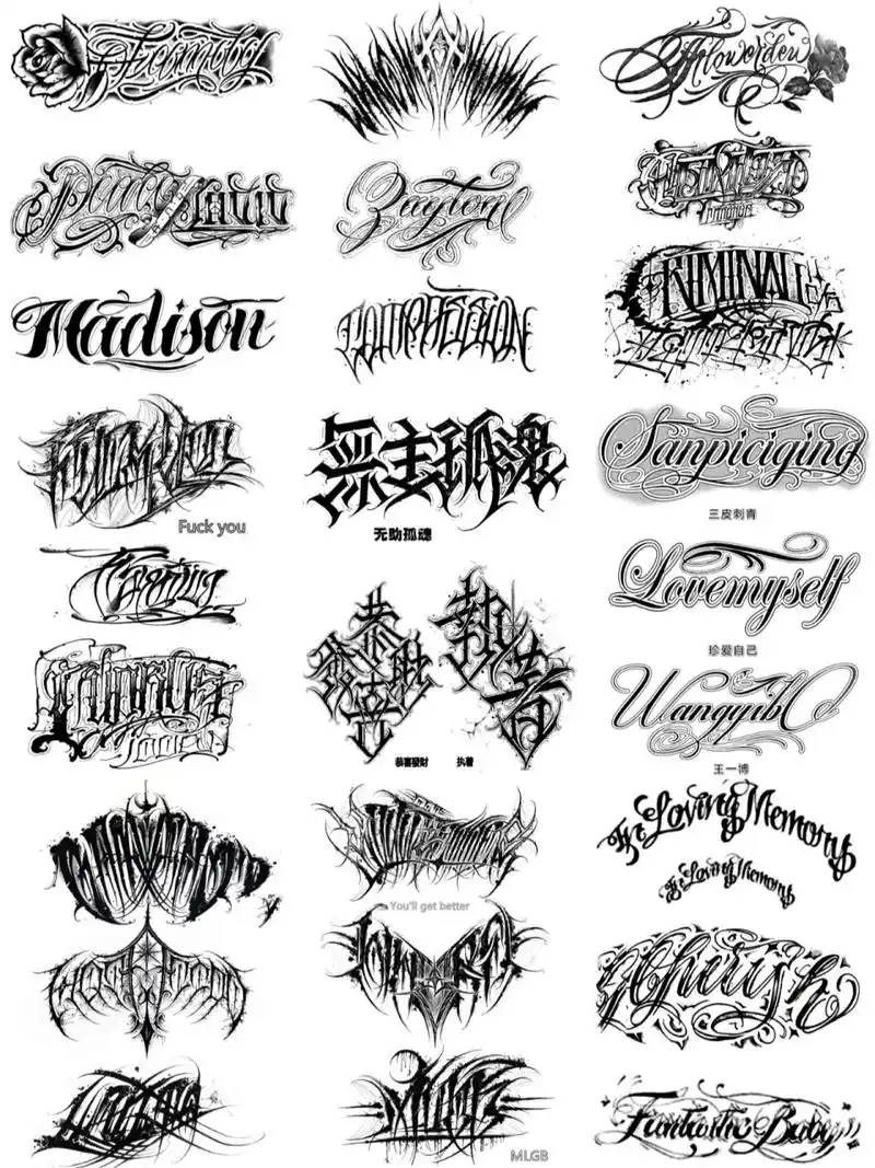 30张个性的英文花体字纹身手稿素材图案