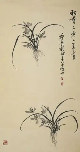 兰花图纸本《王者之香》,由资深藏家提供,原装纸本纸裱,尺寸:109x55cm