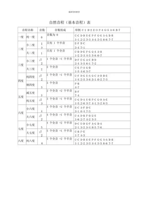 实用乐理音程一览表~(自然音程)#音乐制作 #编曲 #音乐制 - 抖音