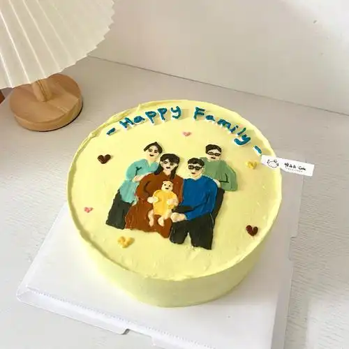 手绘一家人照片蛋糕