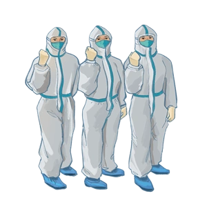 疫情防控核酸卡通手绘穿防护服医生指导元素