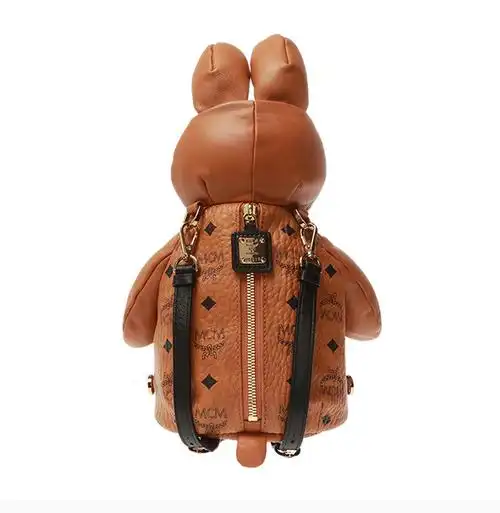 mcm/mcm【20秋冬新款】女士棕色涂层帆布配皮兔子形玩偶背后拉链开合