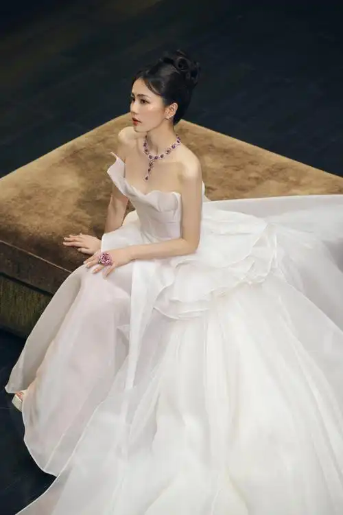 鞠婧祎,白鹿相似婚纱造型,都很有白月光的氛围感!