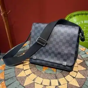 二手正品lv 黑棋盘男款斜挎邮差包日本中古奢侈品vintage男包