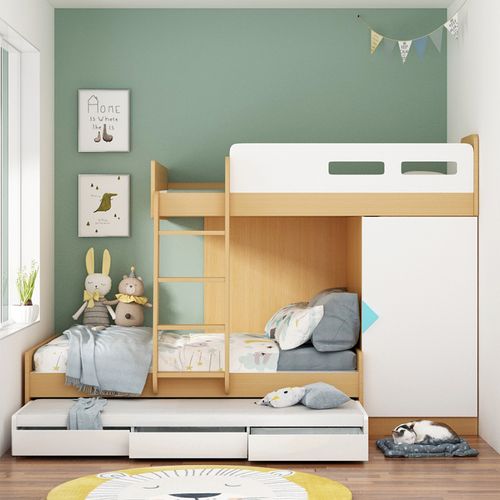 安兰图交错式榻榻米高低子母床儿童多功能组合小户型双层床上下床