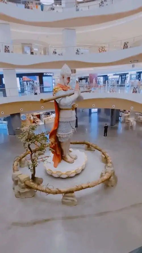大慈恩寺西大悦城商场里有一个巨大的孙悟空 双手合十面向大雁塔广场