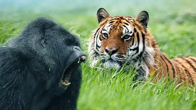 当银背大猩猩遇到了棕熊,力量和智慧的交锋,究竟谁更厉害呢