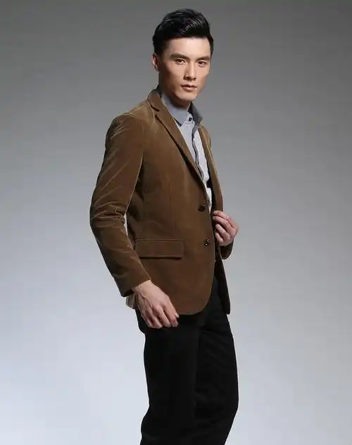 男款咖啡色时尚长袖西装外套
