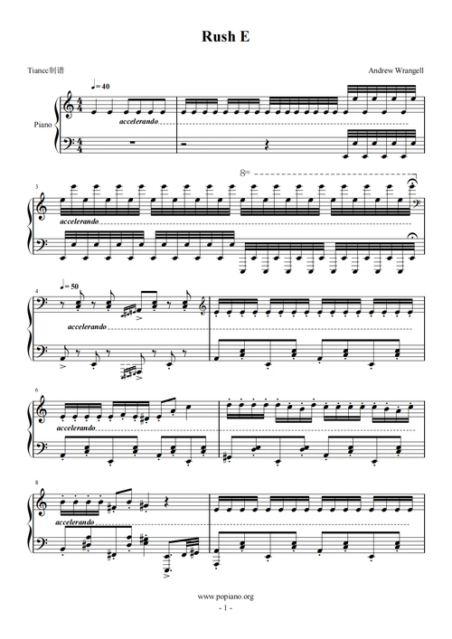 《rush--e》完美超好听,740难度钢琴谱-c调-虫虫钢琴