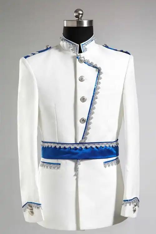 影楼主题男装 宫廷王子白色立领西服套装 歌手演唱新郎穿男士礼服
