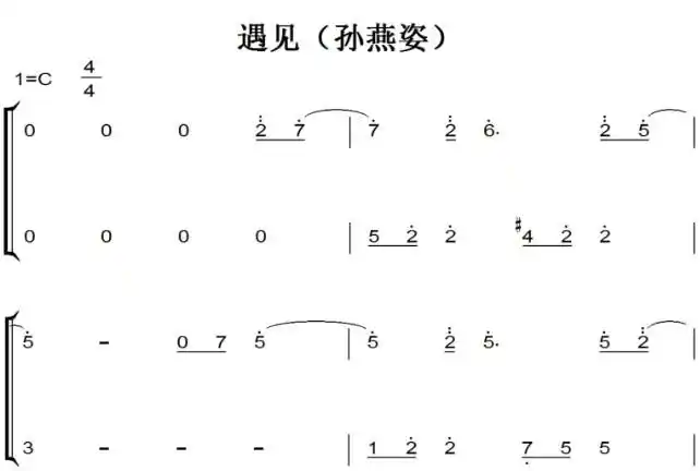 遇见 原版 钢琴双手简谱 钢琴谱 钢琴简谱