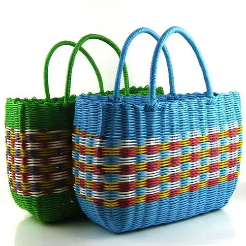 编织手工便利手提菜篮子购物篮收纳塑料环保美观购物篮