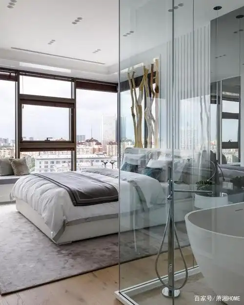 她家卫生间使用玻璃做墙,视野通透,设计时尚前卫,很高端!
