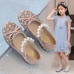 软底女孩高跟鞋宝宝女童鞋珍珠单鞋子小皮鞋公主鞋时尚儿童水晶鞋