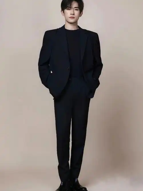 易烊千玺身穿经典黑色西装套装帅气利落,彰显沉稳绅士气质.