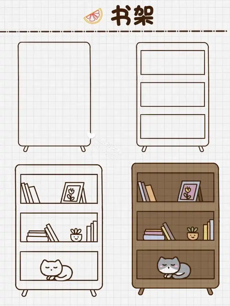 d3398书架简笔画 今天画个小书架92~ 大家书架上都喜欢放些什么