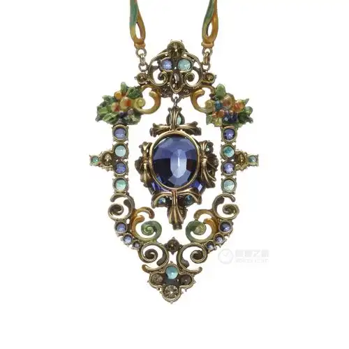 返回古董珍藏18k黄金镶嵌蓝宝石珐琅及彩色钻石项链详情页