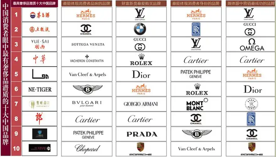 全球奢侈品牌100强 由世界奢侈品协会(world luxury association,简称