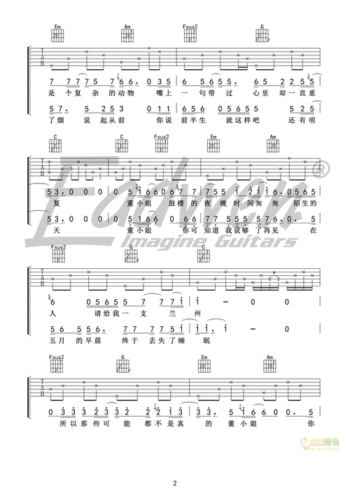 董小姐吉他谱左立e调_吉他谱_歌词曲谱