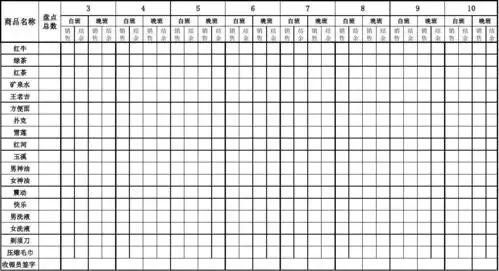 盘点表格商品库存盘点表超市酒水库存盘点表服装店货物清点明细表