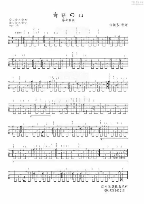 奇迹の山(奇迹山)吉他谱(图片谱,指弹)_岸部真明(岸部眞明;masaaki