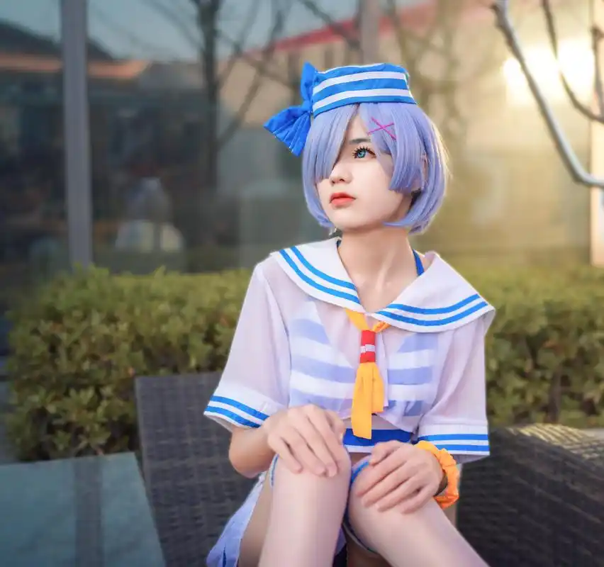 雷姆泳装cos,怎么这么不小心,把衣服都弄湿了