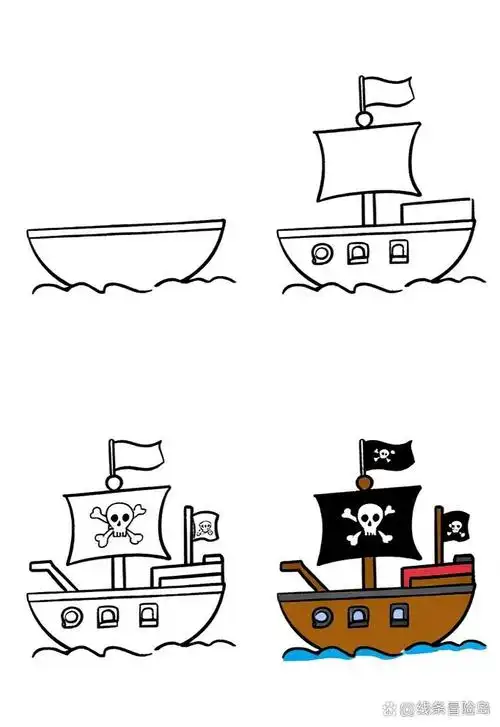海盗船.加勒比海盗船简笔画#儿童绘画 #可爱简笔画 #灵魂画