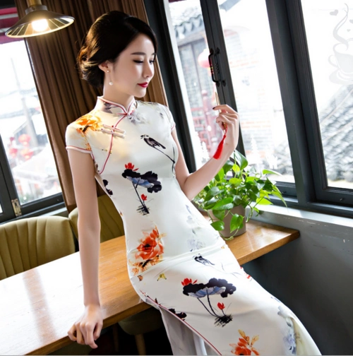 改良纺丝提花中长款双层旗袍2021春夏新款女士日常旗袍 丝绸提花22603