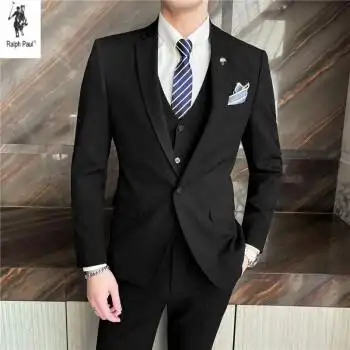 英国拉尔伦保罗四季男士商务休闲西服三件套韩版修身新郎伴郎婚礼西装