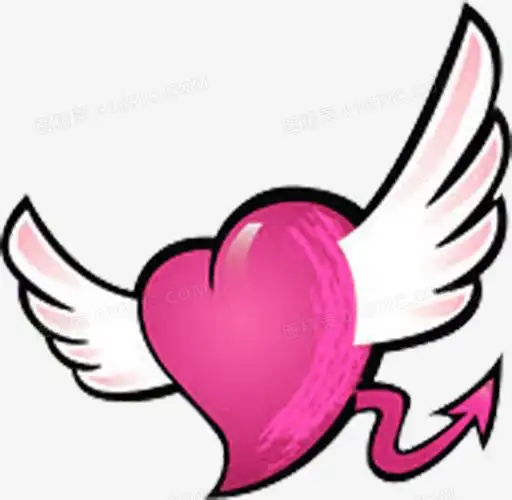卡通粉心翅膀箭头